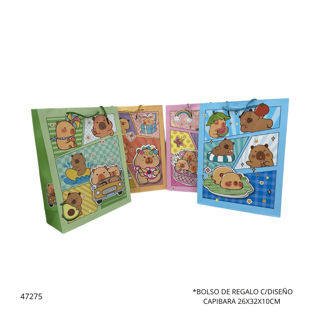 BOLSO DE REGALO C/DISEÑO CAPIBARA 26X32X10CM (YXL-1571M)